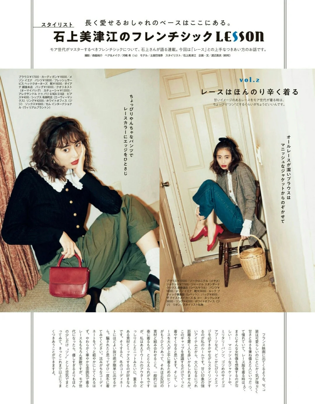 绿色的毛衣内搭白色的衬衫,营造出了假两件的既视感,白色加绿色清新自然很有层次感。V领的设计非常适合脸大的朋友们,可以有效地从视觉显脸小,拉长颈部的线条。耳朵上的绿色耳饰呼应了绿色毛衣,整体表现出和谐又大气的感觉,非常优雅耐看。
